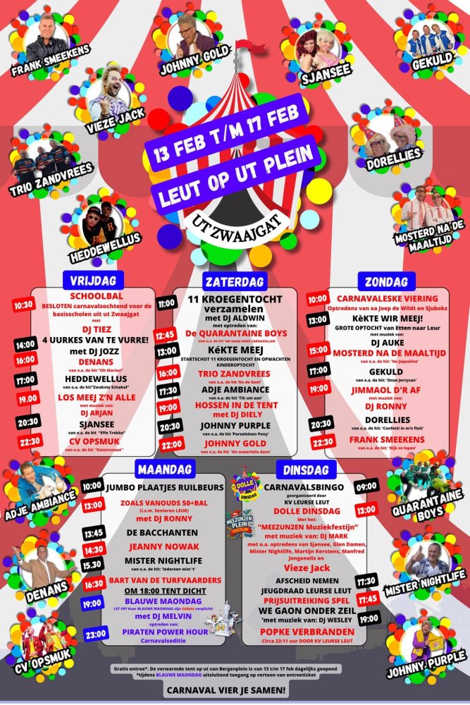 Ook dit jaar vindt op het Van Bergenplein weer het carnavals-evenement Leut op ut Plein plaats.
