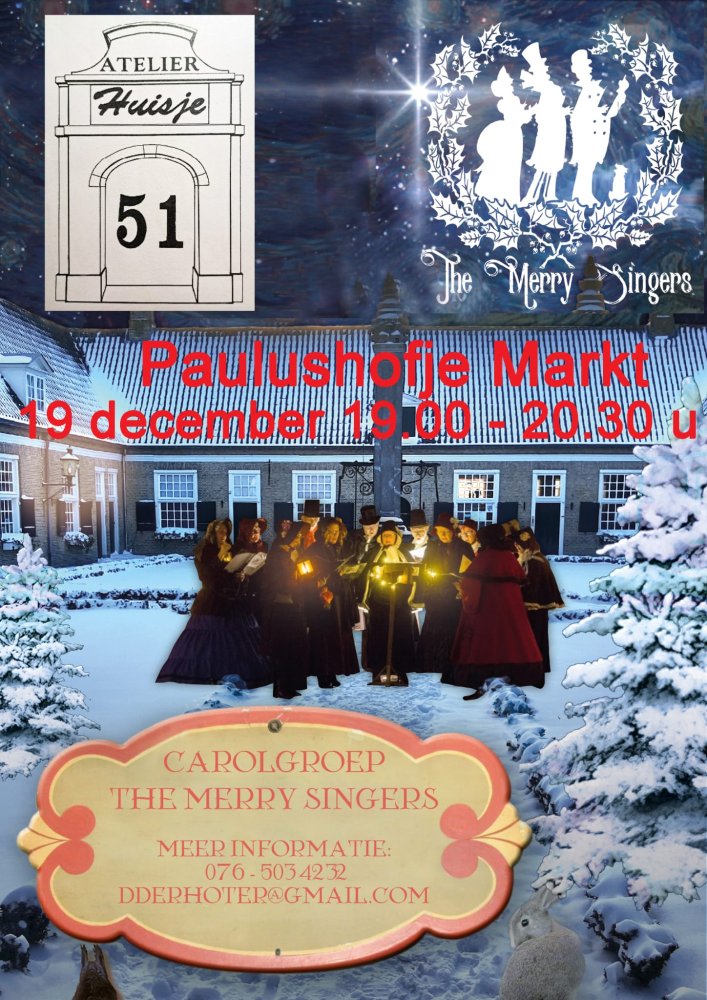 Op vrijdag 19 december vanaf 19.00 uur tot 20.30 uur geeft het koor The Merry Singers weer zijn kerstoptreden. De 18 koorleden zingen vooral meerstemmige Engelse Christmascarol,s maar ook Stille Nacht wordt vast wel gezongen.