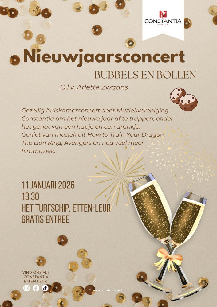 Kom 11 januari genieten van een gezellig huiskamerconcert om het nieuwe jaar af te trappen, onder het genot van een hapje en een drankje. De middag wordt verzorgd door muziekvereniging Constantia en Het Turfschip.